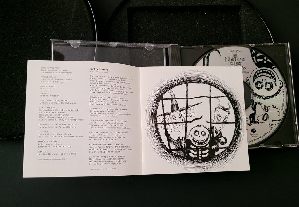 Vinyl Jack Skellington head CD case! I bought this when it first came out (for $35!) and kept it in pristine condition. The disc itself is without flaw. The insert has all the lyrics. I especially like the zipper thingy. Anyhow, everything must go! This must be yours. I can get it to you by Christmas! (Unless you buy it after Dec. 16th, then no guarantee.)