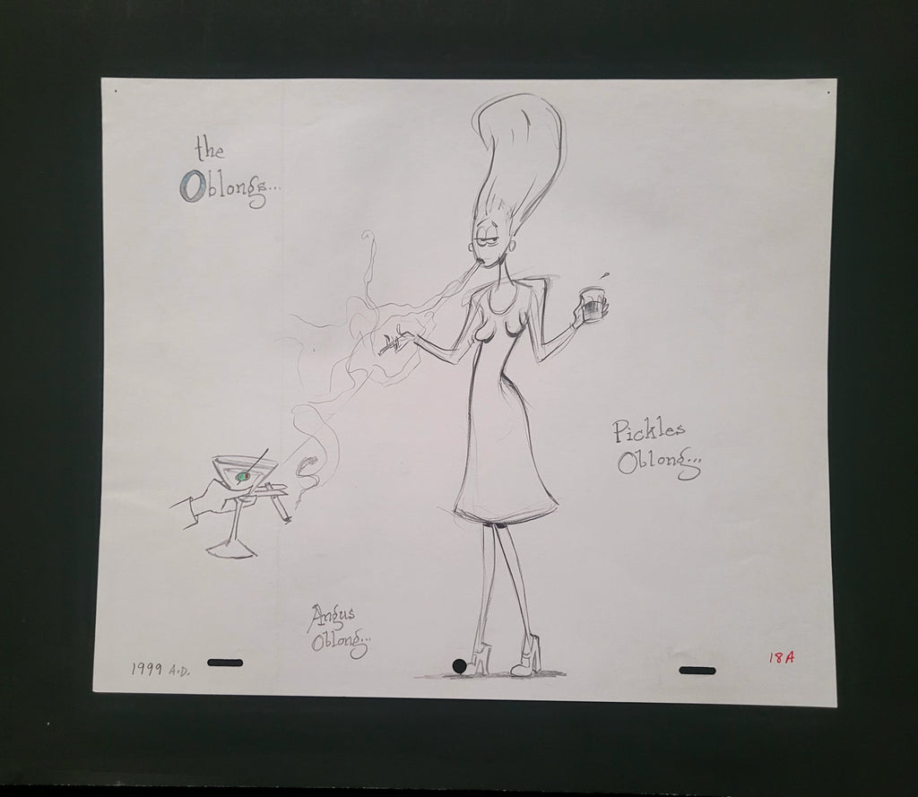 Pickles Oblong smoking and drinking. I knew from the beginning that Pickles would always have both a cigarette and a martini in her hands, and I was only asked once by the Development team at the network if I was sure about promoting those bad habits. I assured them that I was certain. And it was never mentioned again!